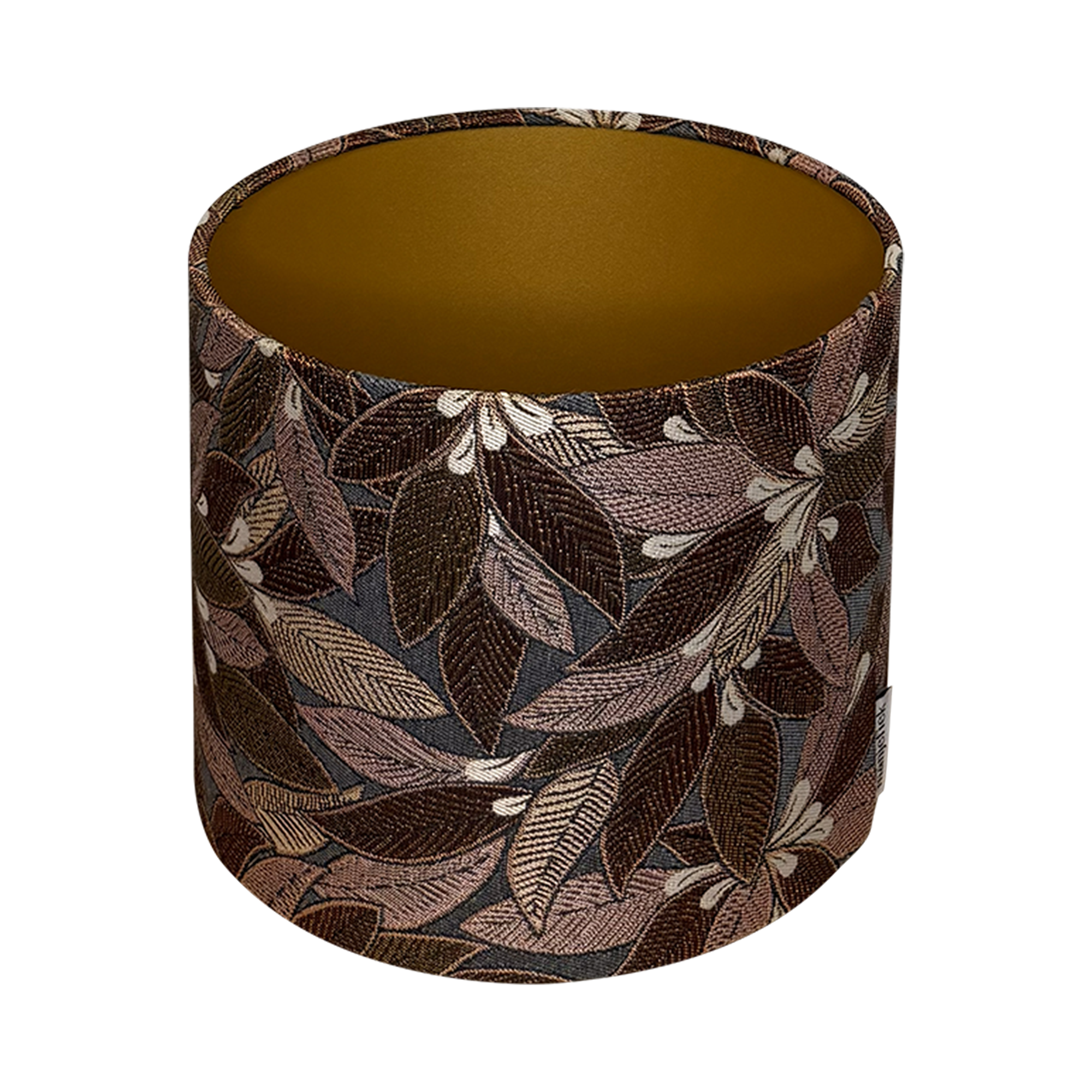 Handgemaakte jacquard lampenkap met bladdessin. Gemaakt van polyester en katoen, met een matgouden binnenkant. Afmeting: Ø25 x 20 cm.