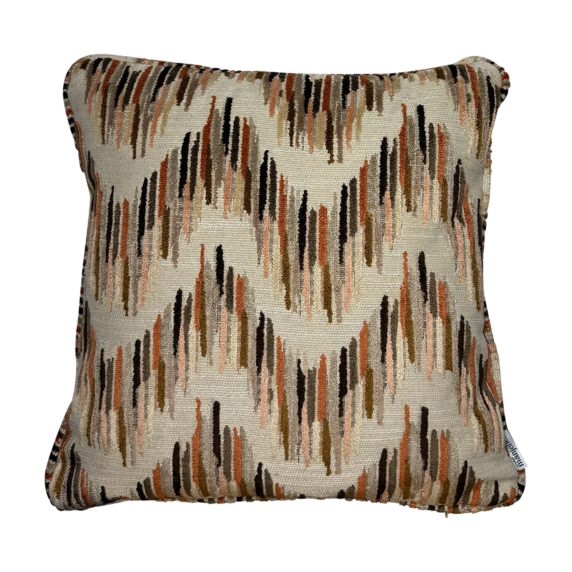 Geef je interieur een stijlvolle en trendy upgrade met het Zigraffine sierkussen 45 x 45 cm. Dit kussen is een echte blikvanger dankzij het speelse zigzagpatroon in warme tinten die perfect passen binnen de huidige interieurtrends. De zachte beige achtertoon zorgt voor balans en maakt het kussen moeiteloos combineerbaar met verschillende woonstijlen.